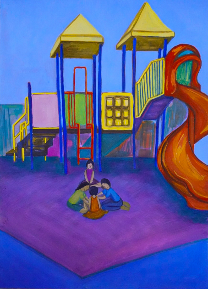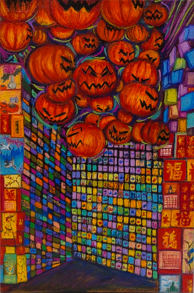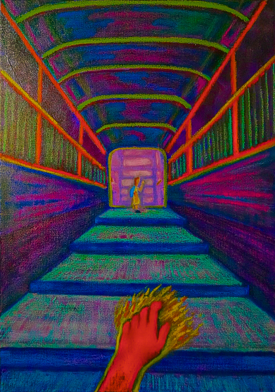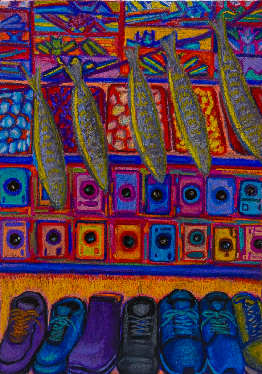 Acrylic, Oil Pastel on Canvas, 420 x 594 mm